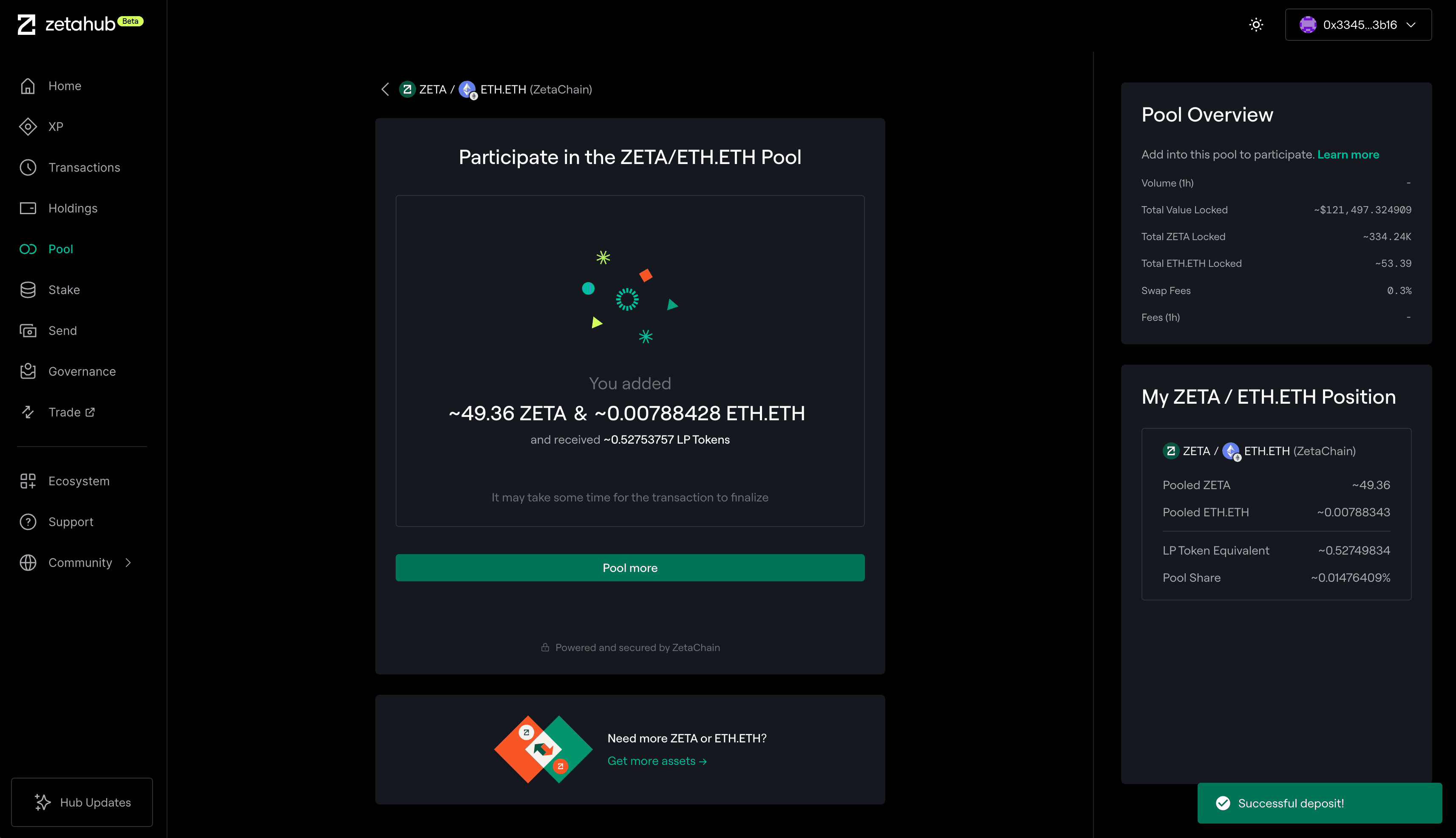 按照以上步骤即可在 ZetaHub 管理流动性,赚取手续费并保有资产控制权。